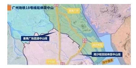 广州地铁18号线延长线(预计2020年建成)已确定在三角镇设立站点,目前已动工建设
