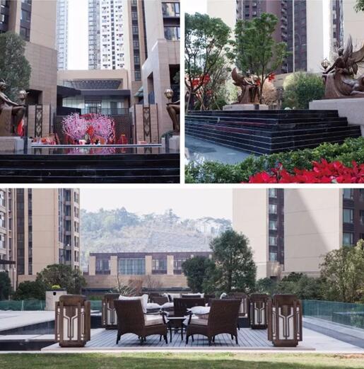 园林入口处水景中轴以一方境水为中心。ArtDeco风格的天使造型作为障景,在此水景之中可谓是点睛之笔点缀于两侧,别具一格的构景,构筑恢宏景观大境。将园林之美发挥至极致,一幅曼妙园林画卷跃然于眼前!