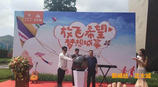 上午10时,在各位媒体记者与来宾的共同见证下,三位领导共同按下启动按钮,伴随着气球满载着希望飞上天空,“放飞希望,梦想城筝”,勤诚达·正大城首届光明风筝趣味嘉年华正式开幕!