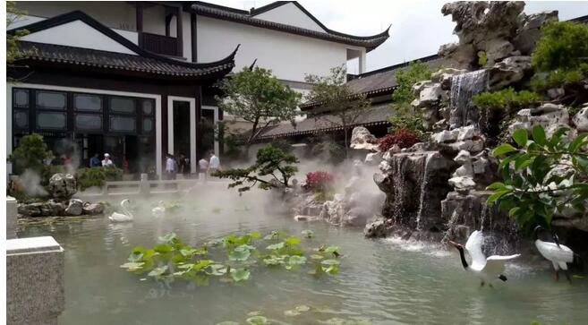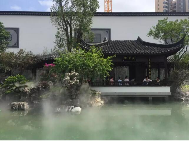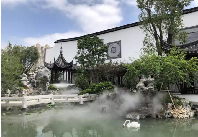 整个园林示范区粉墙黛瓦、亭台楼阁错落有致,据悉,项目以北宋范宽《溪山行旅图》和王维《山居秋暝》为设计蓝本,苏州古典园林为依托,借鉴苏州名园拙政园、网师园等名园之景,塑造名园之境。
