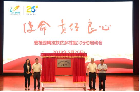 5月20日,世界500强和行业龙头碧桂园集团在广东顺德总部启动全面推进精准扶贫乡村振兴行动,与河北省石家庄市平山县、江西省赣州市兴国县、湖南省岳阳市平江县等革命老区在内的全国13个县达成结对帮扶协议,确保在2020年前,力争2019年前,助力32万建档立卡贫困人口的全面脱贫。