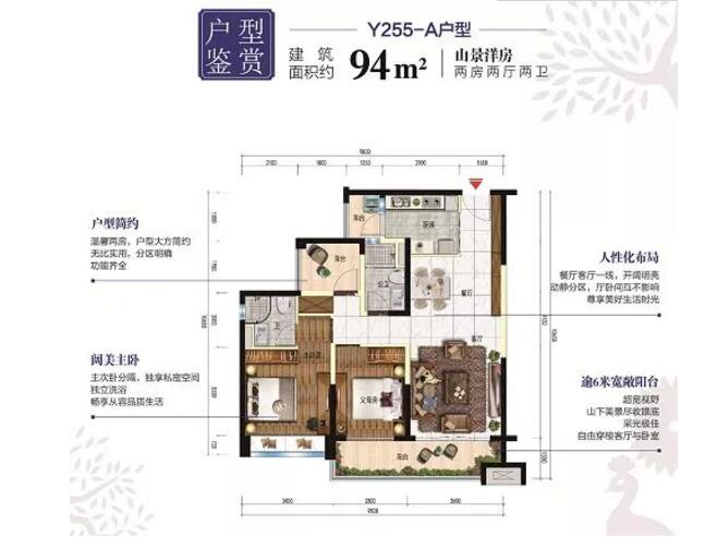 云山组团明星户型 94㎡无遮挡山景洋房 94㎡户型的产品,把云山组团的精髓体验做到了极致。