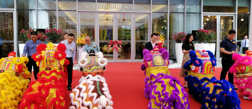 方直集团领导上台为雄狮点睛。当彩砂倒满,大门开启的一刻,象征着方直·彩虹里正式对外开放。