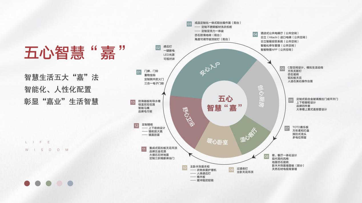装修上也遵循智慧生活五大“嘉”法打造室内空间,从入户到卫浴、厨房,再到客厅、卧室,通过近80个细节予以完美演绎,是在用心和细节为房子注入匠心,打造独有的五心智慧“嘉”。