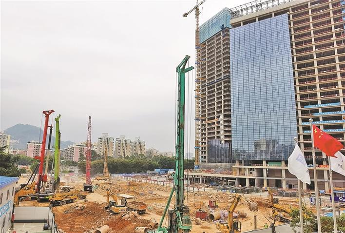 3月10日下午,在福田区吉龙七街,皇岗中学拆建教学综合楼工程项目打地基的声音响彻云霄,几台挖掘机正在施工作业。“我们正在全力以赴、紧张施工。”皇岗中学拆建教学综合楼工程项目经理徐皓东介绍,原计划2月1日开工,今年7月份打完地基,由于新冠肺炎疫情和一些工人难以到岗等各种原因,使得工程推迟到2月25日才复工,目前工地已有90多名工人到岗,预计进度会有影响,但尽量朝前赶。