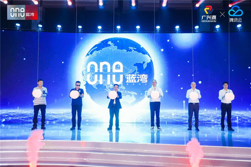 腾讯云签约仪式结束后,来到了今天活动的重头戏——广兴源·蓝湾项目启动仪式,黄耀文先生、万超先生、张洪华先生、李焕平先生、王振江总经理、李俊锋先生,上台为广兴源·蓝湾项目启动助力,在舞台上通过高科技光球仪式共同启动广兴源·蓝湾项目。