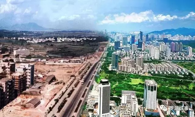 深南大道(合成图,左图摄于1983年,右图摄于2006年)