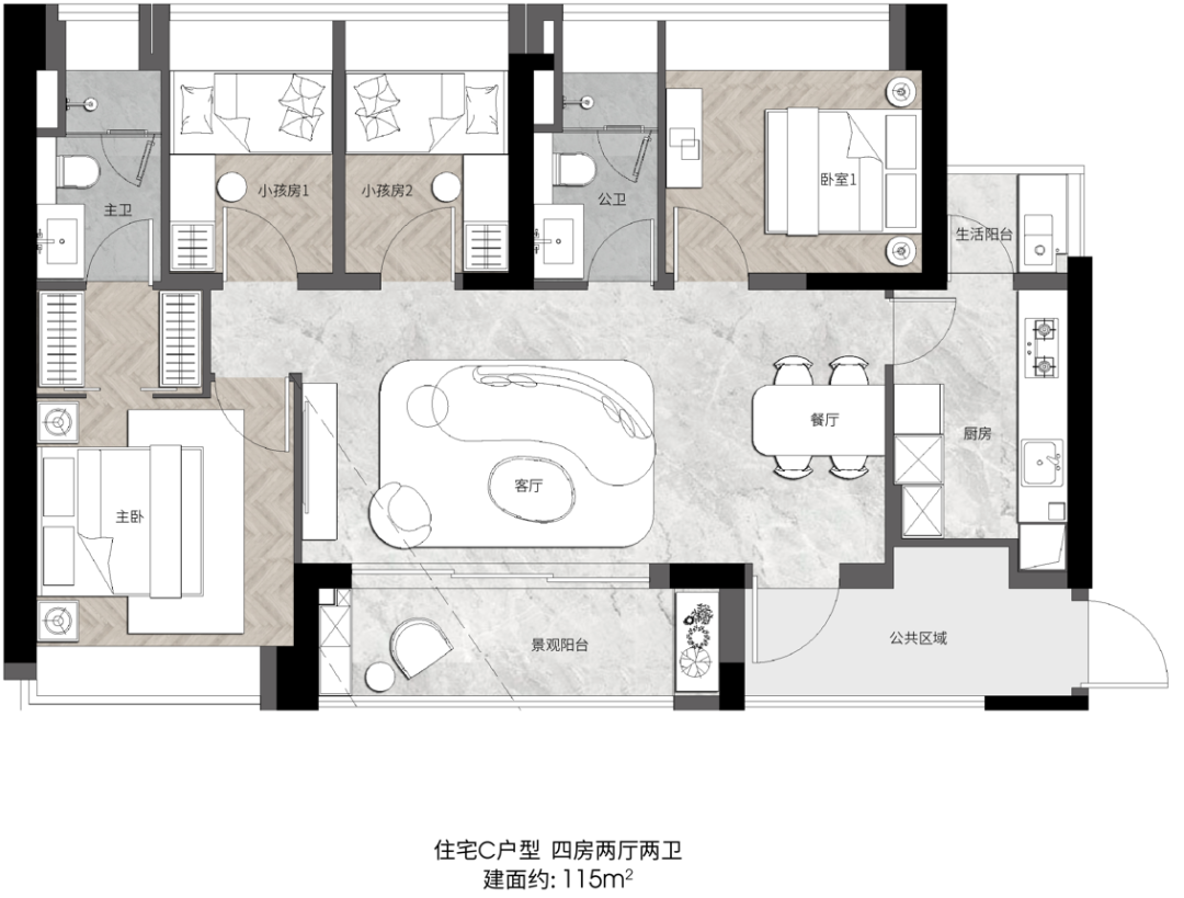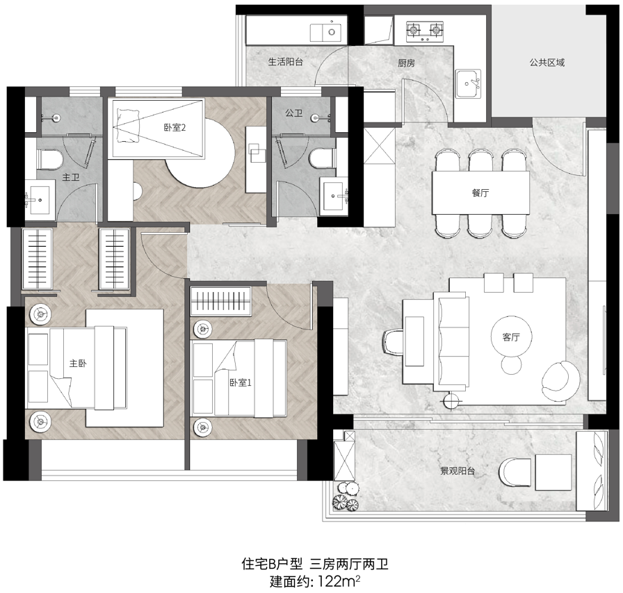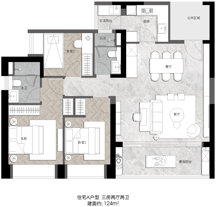 而且,住宅产品户型都很不错,采光通风俱佳,可满足三代同堂居住需要。还有独特的 LDK+B阳台客厅餐厅一体化的设计,既满足家庭活动空间功能需求又能营造私享时刻与氛围,使得家庭成员可以在独处与互动两种状态下随时切换。