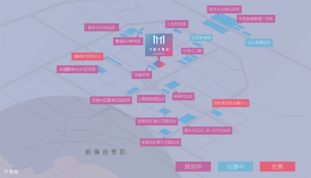 作为深圳都市核心区,前海、宝中双核辐射之地,万科大都会周边的交通、商业、文体等生活配套资源自然十分丰富。