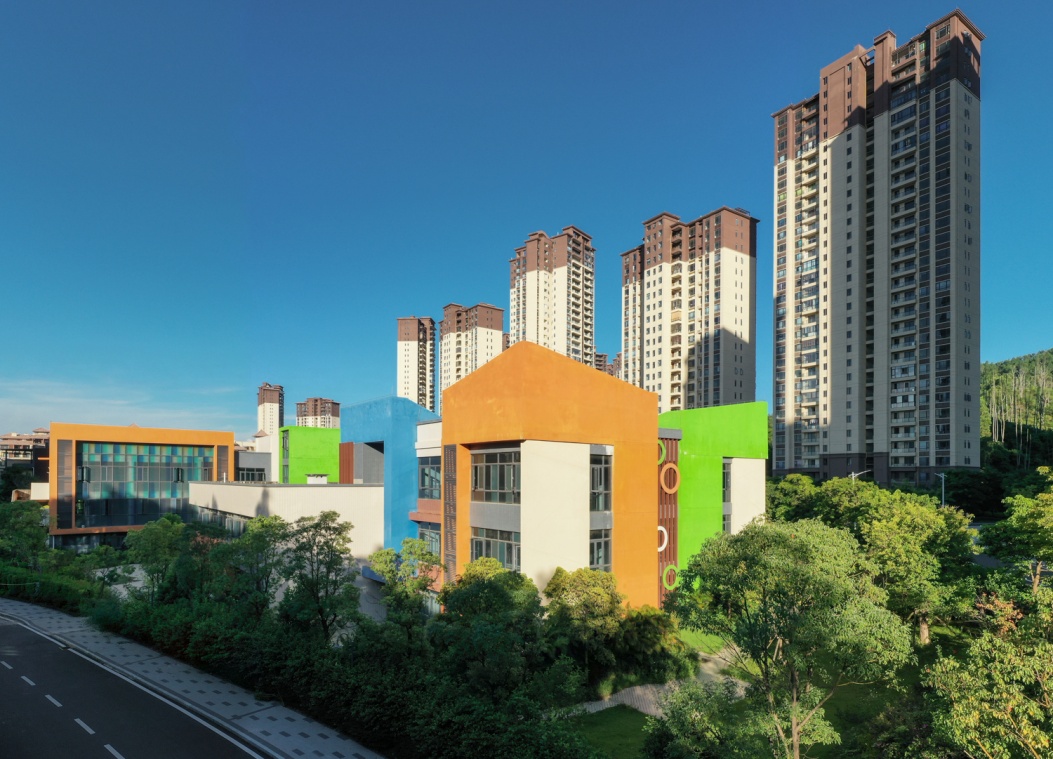 项目还配套一所“群峰花园小学”(暂名),公办性质规划设置36个班,满足1620个学位需求。小学位于山地之上,设计立意“山房书屋”,把东方建筑进行了现代演绎,通过分解、错动,将建筑化整为零,创造现代充满童趣的空间关系与建筑形式,学校设计还荣获“香港建筑师学会两岸四地建筑设计大奖”卓越奖。