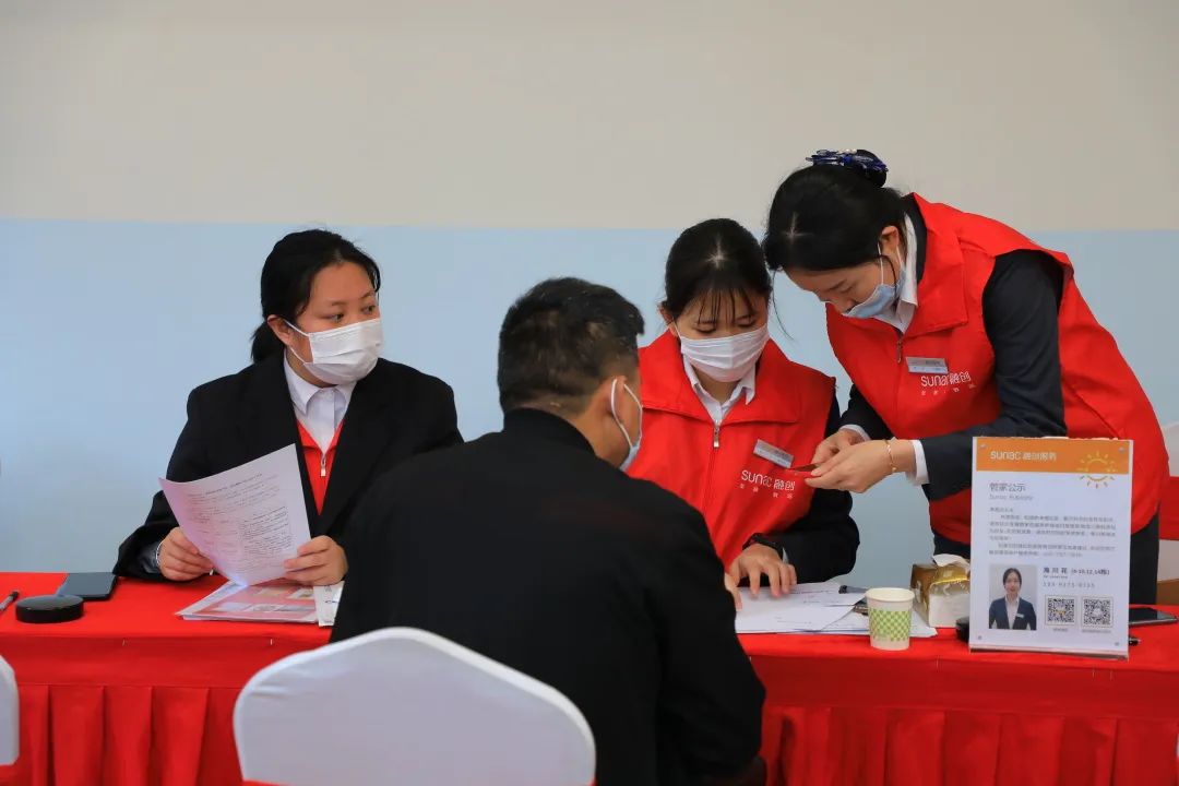 在交付现场,我们也不断提升体验,融创员工和房修工程师1V1陪同,进行导览式交付,在过程中对业主进行详尽解答,以真心换得业主满意。而未来,房修工程师也将持续、随时,为业主解决相关问题,给予业主安心。