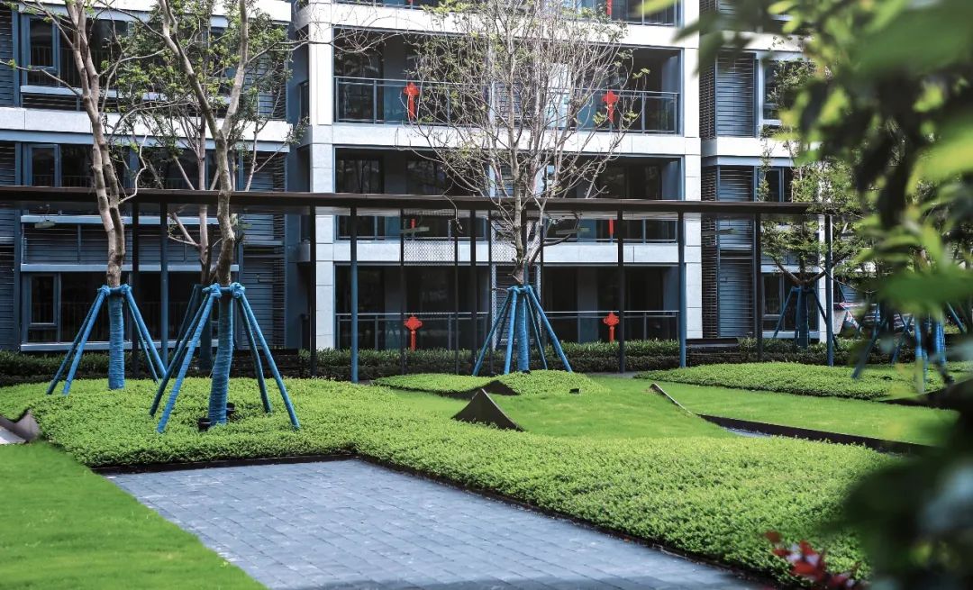 此外,东莞·融创云玺湾里满目绿植景观设计也融入了匠心巧思。位于景观轴上的核心府院,以石为水,以草为界,创造中式山水意境,植物种植以精巧展现,如丛生朴树、丛生香柚、佛甲草等,与山石相融,打造极富意境的核心景观空间;核心府院向北,儿童乐园的景观绿植以安全和科普性为主,如朴树、凤凰木等,视觉上保证通透,以便儿童看护;核心府院往南,泳池周边植物景观则以香樟、丛生香柚、仁面子等浓密型绿植围合,形成私密性景观空间;宅间绿地采用列植与自然种植形式相结合,丰富景观层次又能收获趣味满满的漫步空间。