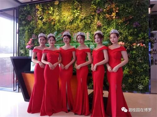 身着红礼服的礼仪小姐欢迎各位尊贵来宾
