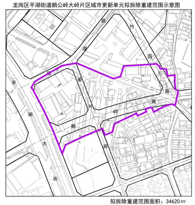 鹅公岭大岭片区更新项目位于平湖街道,鹅岭路与平湖大道交汇处东北角。拟拆除重建用地面积34619.89㎡,更新方向为居住、商业用地功能。申报主体为深圳市鹅公岭股份合作公司 。