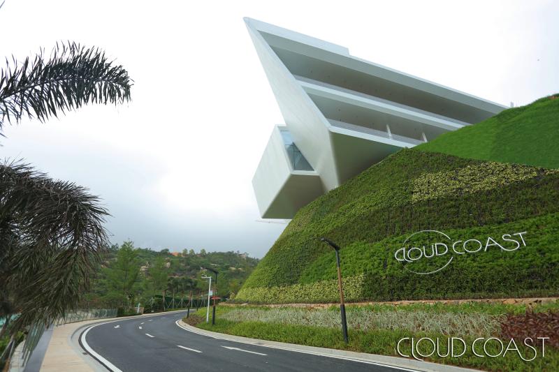 悬崖艺术馆坐落在岩石沙滩之上,绿树悬崖旁,面朝大海的艺术馆,是起着一个精神地标、传递审美与文化的艺术建筑,是云顶海岸最先面世的建筑。它以纯白色不规则的体块进行堆叠而成一个纸鹤的造型,就像海边一个欲展翅而飞的纸鹤,充满了艺术美感与想象张力,象征着艺术的自由的想象力。同时立面大面积使用了落地窗,建筑的白色结合窗外的蓝色形成安静的场景营造,给人创造一个放松遐想的空间。六位网红大V行走在其中,感受流畅的线条,回旋的楼梯,如海洋般梦幻的吊灯,珍藏的图书与精致的摆件,到处都是艺术与生态的碰撞,尽显项目的建筑与艺术美学主义。