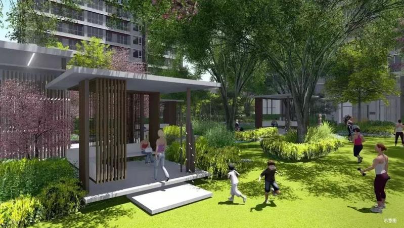 ● 儿童活动区域设置婴儿车停放位、护理台、储物柜等功能空间,休闲空间设置户外电源和WIFI等户外办公设施,无微不至的周到,让住户体会到家的温暖与细心。