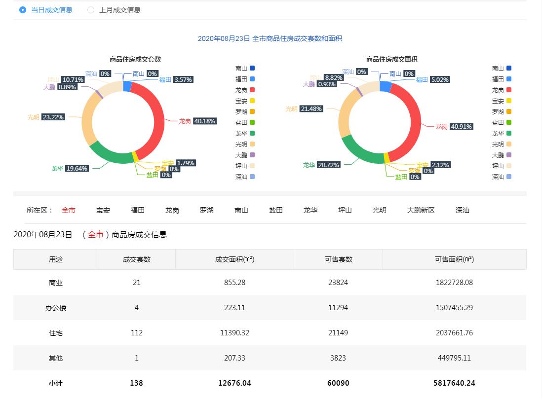 每日成交数据:8月23日深圳市商品住宅共成交112套。