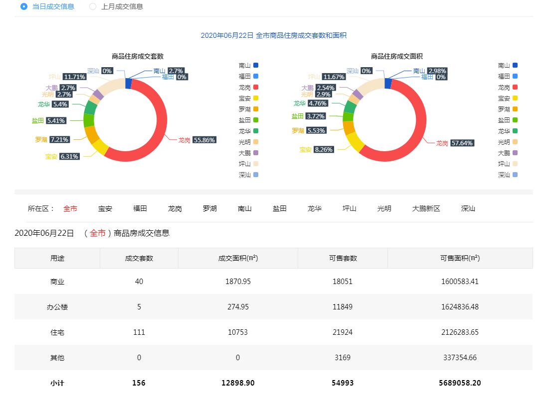 每日成交数据:6月22日深圳市商品住宅共成交111套。