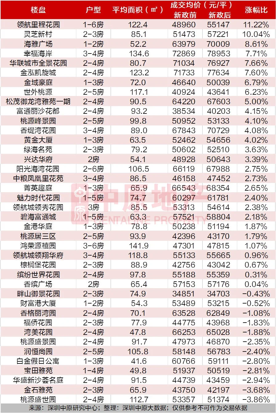 看过深圳半年的整体表现,那楼盘的具体表现又如何呢?本期『据说』还整理了各区热门成交二手楼盘新政前后的变化,(新政前:2017.8.1—2018.7.31;新政后2018.8.1—2019.7.31)的房屋均价对比。