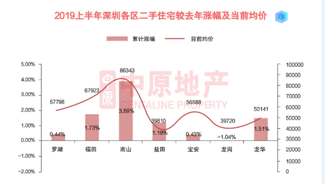 根据深圳中原研究中心数据,今年上半年二手住宅成交均价为52543元/㎡,较去年同期上升4.2%。