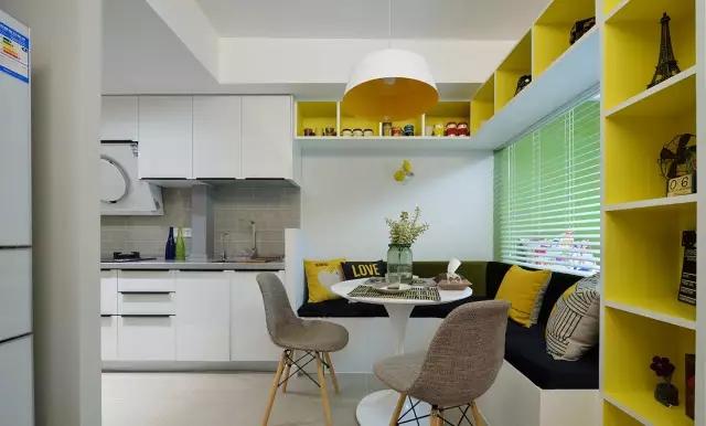 【餐厅】48㎡的小户型也能拥有独立餐厅,秘诀就在于对角落空间的最大化利用。