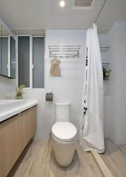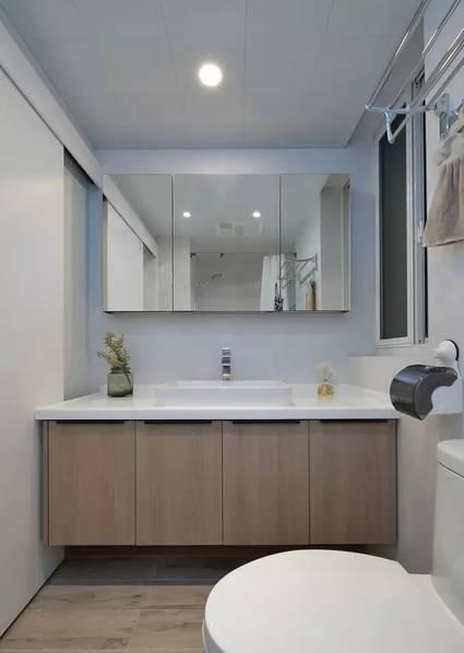 【卫生间】虽然不大,却好在有个小小的通风窗,配合仿木纹瓷砖地板感觉清爽又明亮。