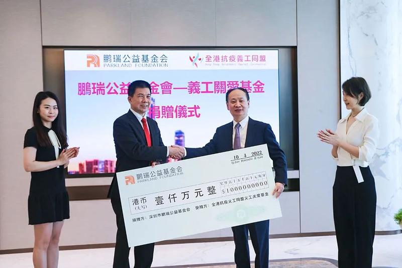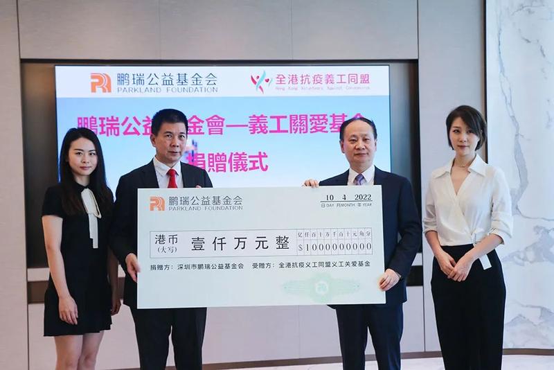 4月10日,鹏瑞公益基金会发起人徐航先生及深圳市鹏瑞公益基金会向“全港社区抗疫连线”及香港义工联盟联合发起成立“全港抗疫义工同盟”所设立的“义工关爱基金”捐赠港币1000万元,为香港逾万名的香港抗疫一线的义工们提供三大援助,包括应急援助金、免费酒店住宿及提供大型义工行动资助。
